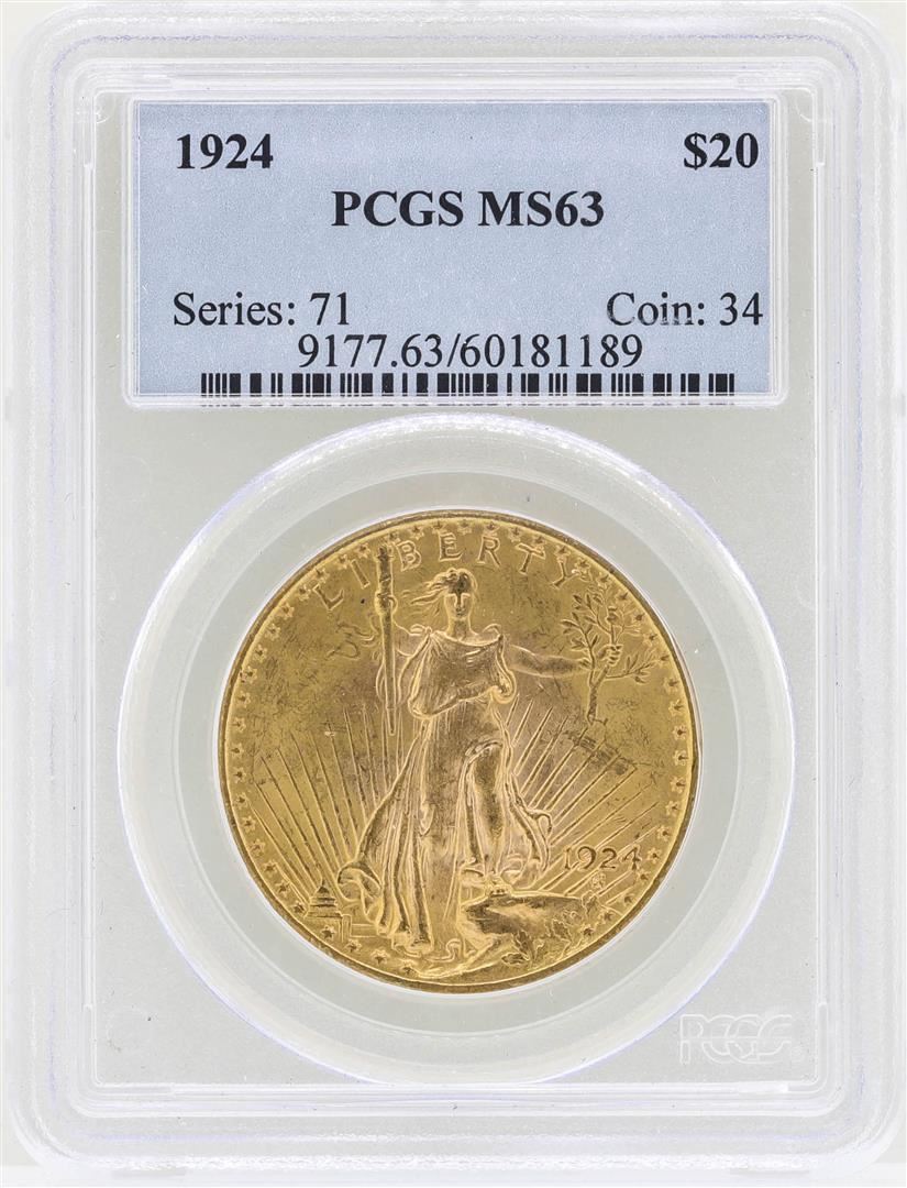 One 1924 $20 St. Gaudens Double Eagle Gold Coin PCGS MS63. PCGS Graded.