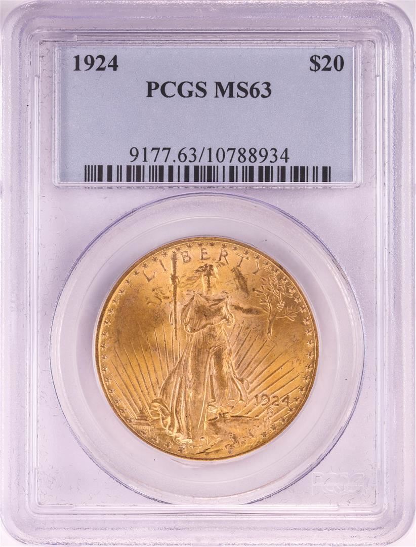 One 1924 $20 St. Gaudens Double Eagle Gold Coin PCGS MS63.