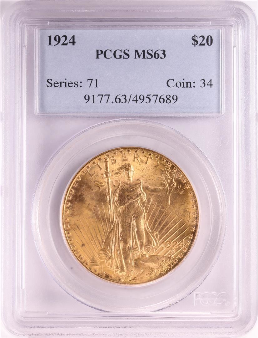One 1924 $20 St. Gaudens Double Eagle Gold Coin PCGS MS63. PCGS Graded.