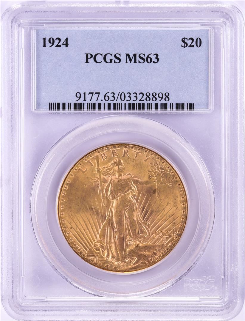 One 1924 $20 St. Gaudens Double Eagle Gold Coin PCGS MS63. PCGS Graded.