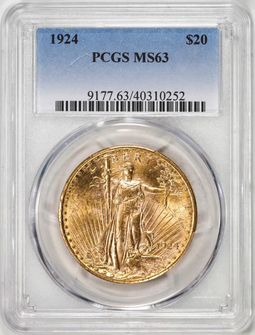 One 1924 $20 St. Gaudens Double Eagle Gold Coin PCGS MS63. PCGS Graded.