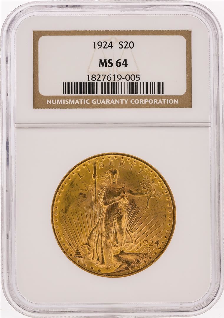 One 1924 $20 St. Gaudens Double Eagle Gold Coin PCGS MS64. PCGS Graded.
