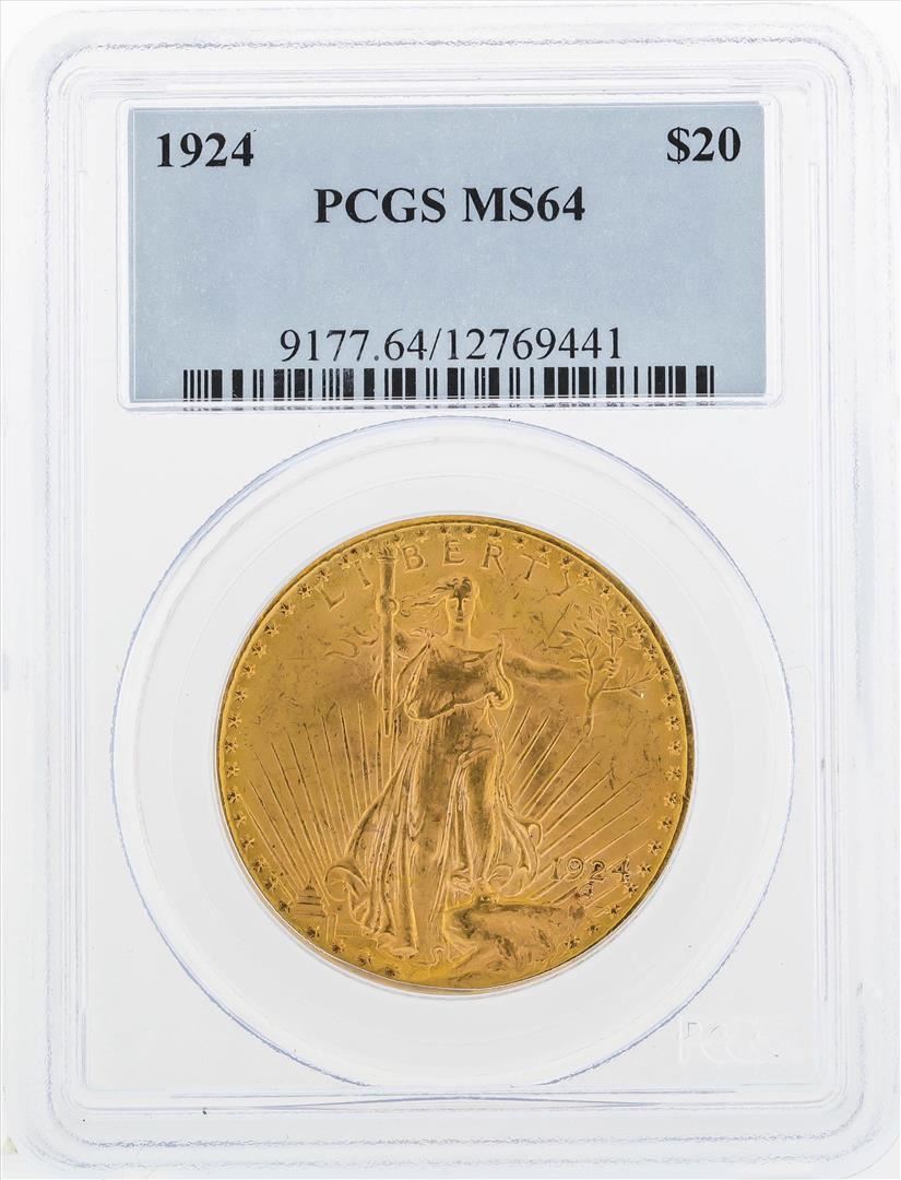 One 1924 $20 St. Gaudens Double Eagle Gold Coin PCGS MS64. PCGS Graded.