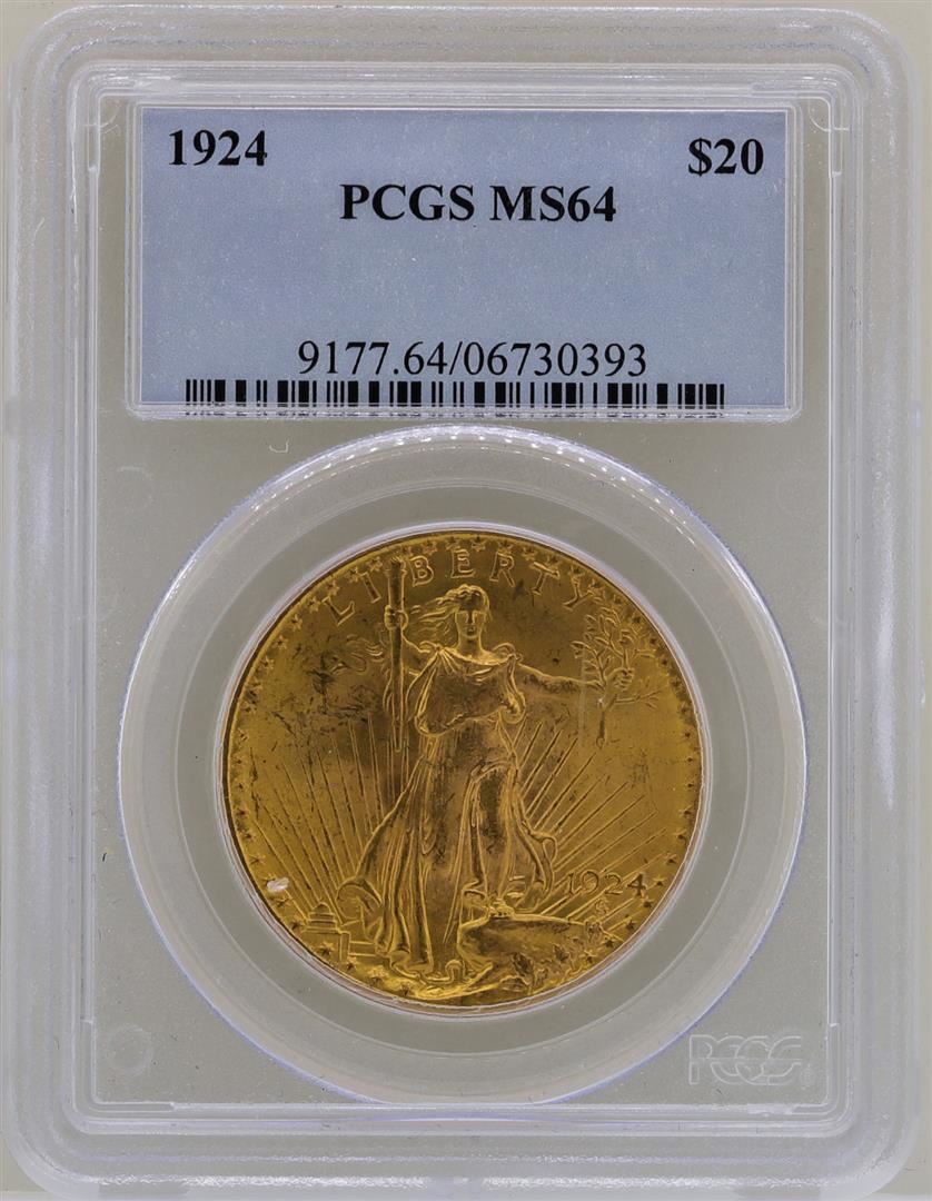 One 1924 $20 St. Gaudens Double Eagle Gold Coin PCGS MS64. PCGS Graded.