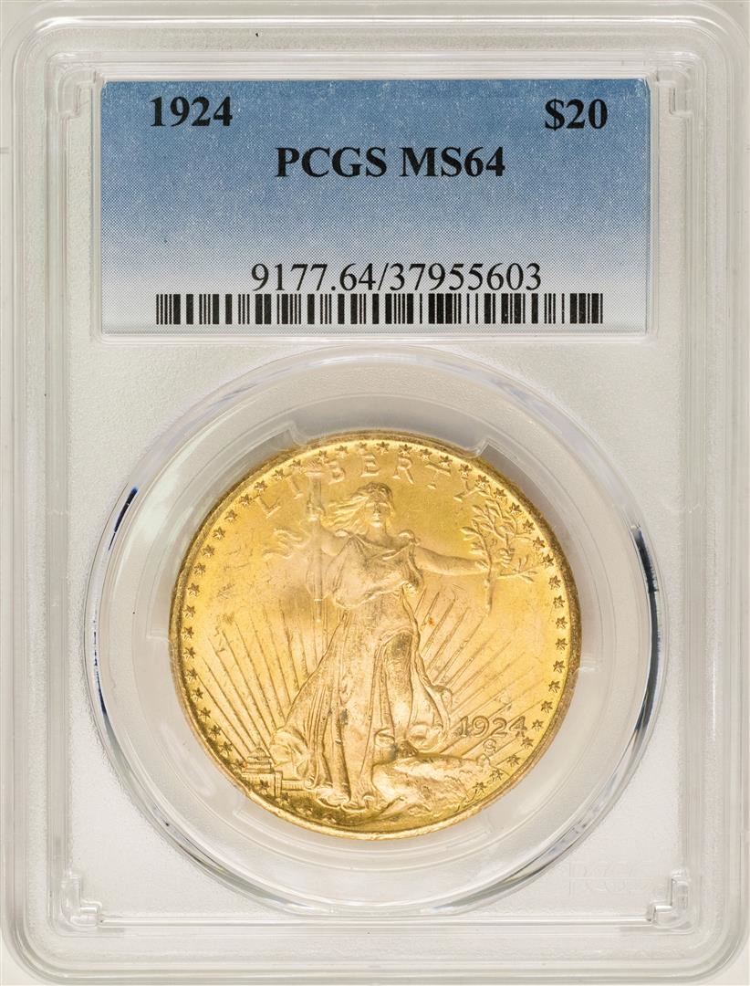 One 1924 $20 St. Gaudens Double Eagle Gold Coin PCGS MS64. PCGS Graded.