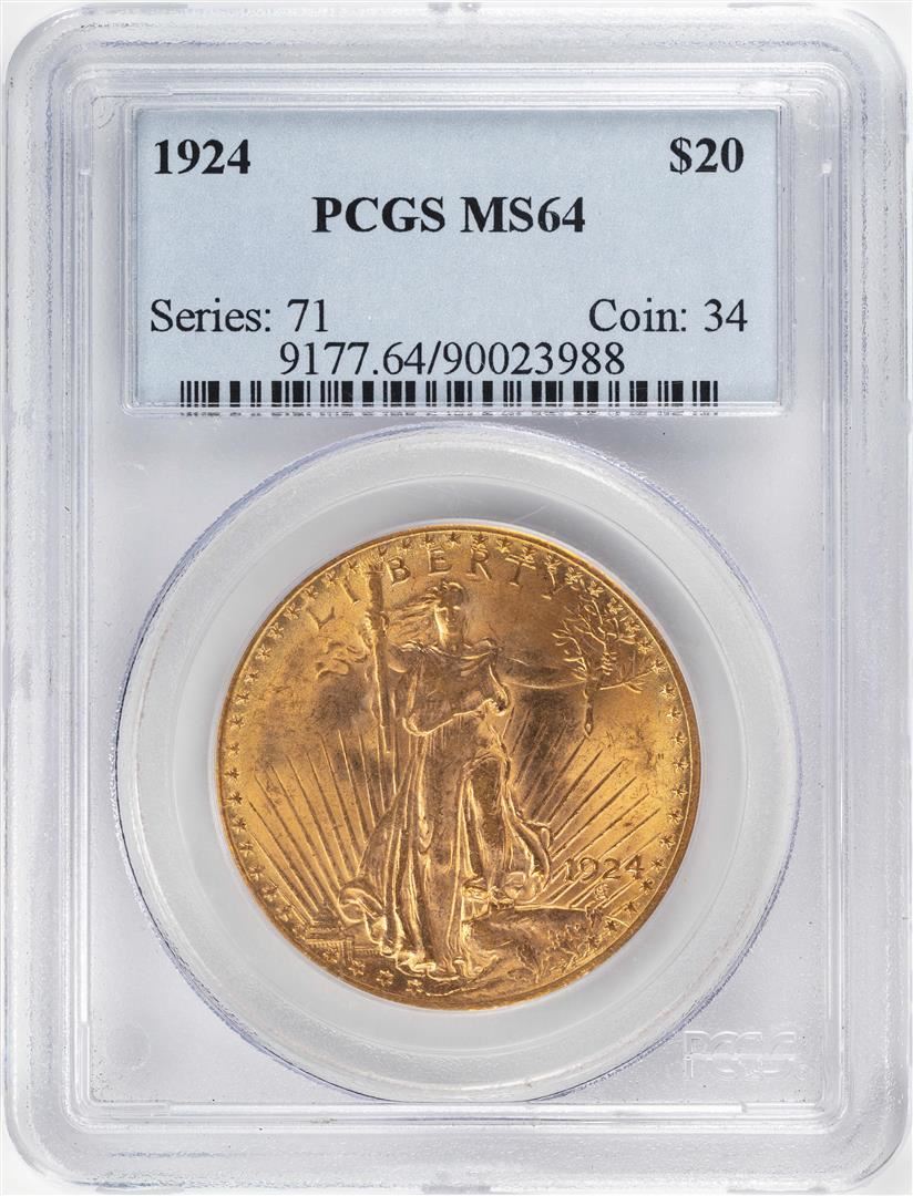 One 1924 $20 St. Gaudens Double Eagle Gold Coin PCGS MS64. PCGS Graded.