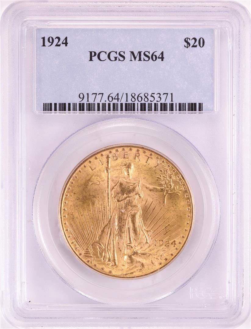 One 1924 $20 St. Gaudens Double Eagle Gold Coin PCGS MS64. PCGS Graded.
