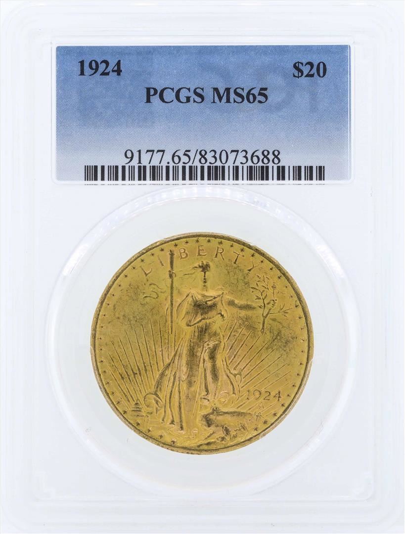 One 1924 $20 St. Gaudens Double Eagle Gold Coin PCGS MS65. PCGS Graded.