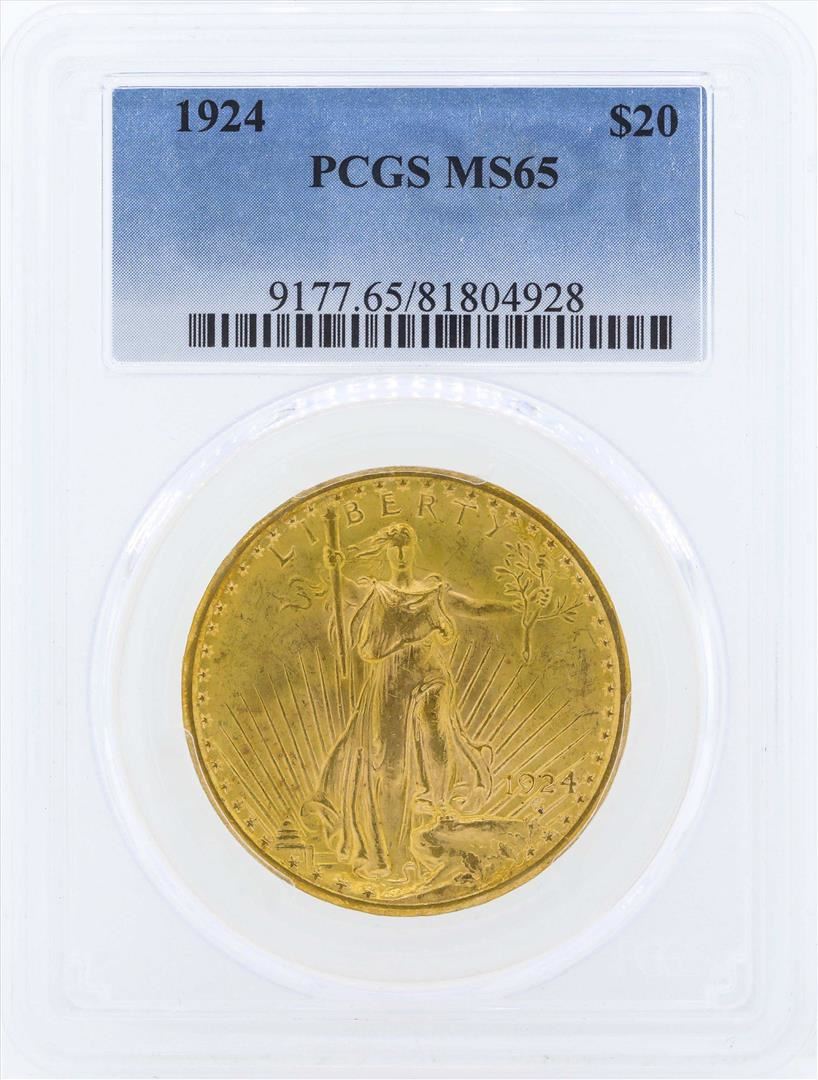 One 1924 $20 St. Gaudens Double Eagle Gold Coin PCGS MS65. PCGS Graded.