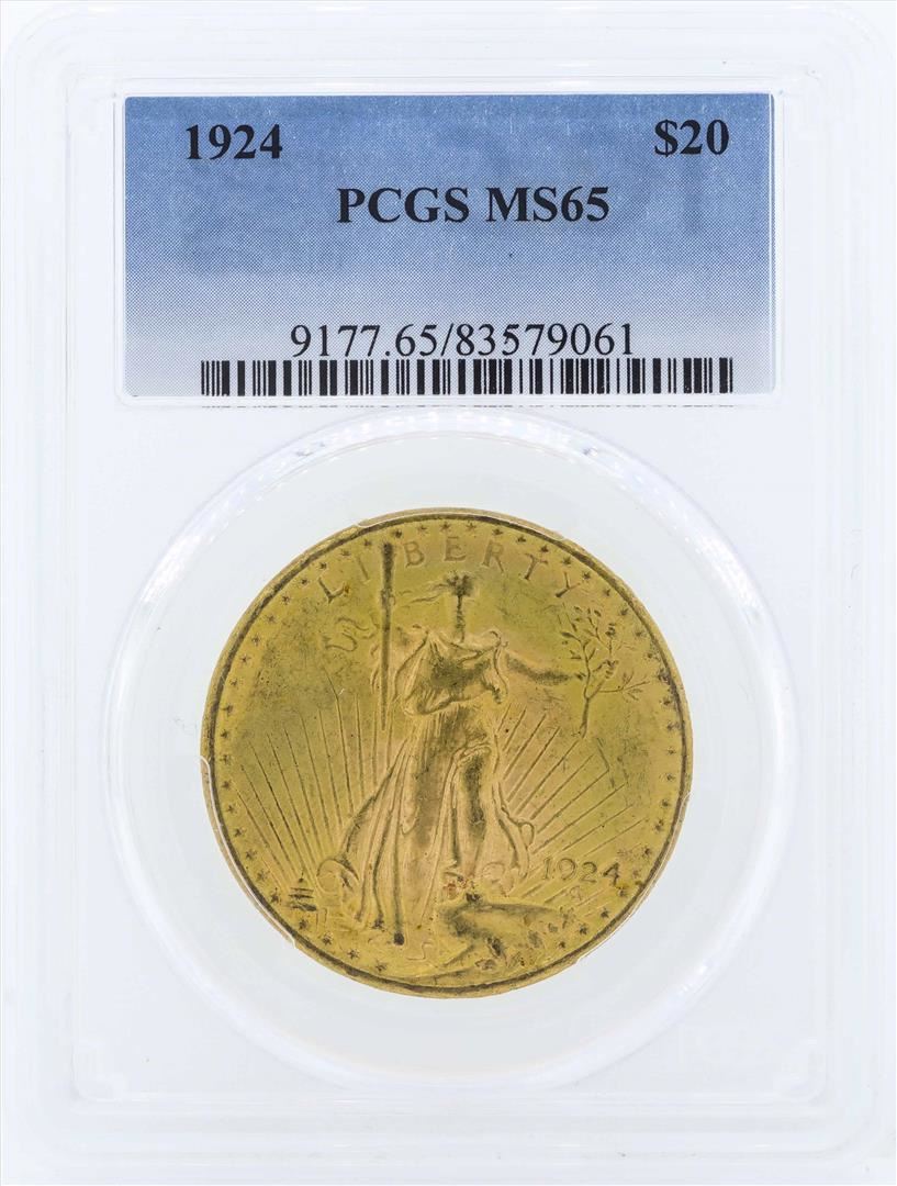 One 1924 $20 St. Gaudens Double Eagle Gold Coin PCGS MS65. PCGS Graded.