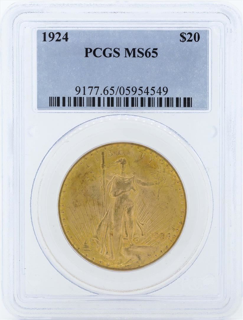 One 1924 $20 St. Gaudens Double Eagle Gold Coin PCGS MS65. PCGS Graded.
