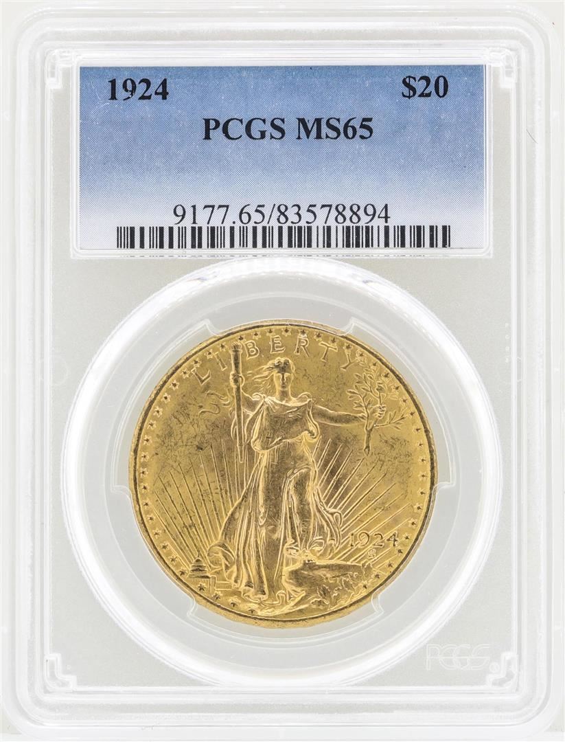 One 1924 $20 St. Gaudens Double Eagle Gold Coin PCGS MS65. PCGS Graded.