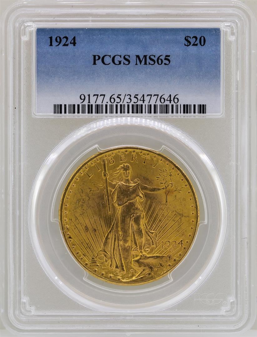One 1924 $20 St. Gaudens Double Eagle Gold Coin PCGS MS65. PCGS Graded.