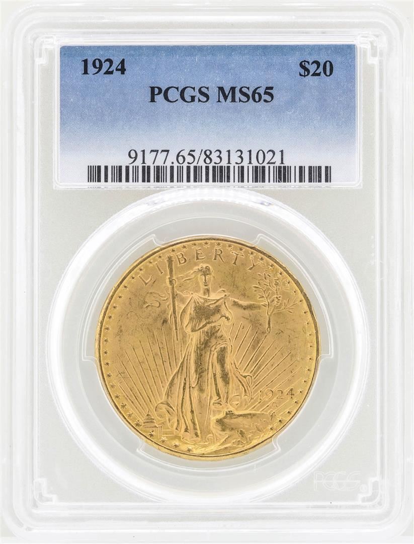One 1924 $20 St. Gaudens Double Eagle Gold Coin PCGS MS65. PCGS Graded.