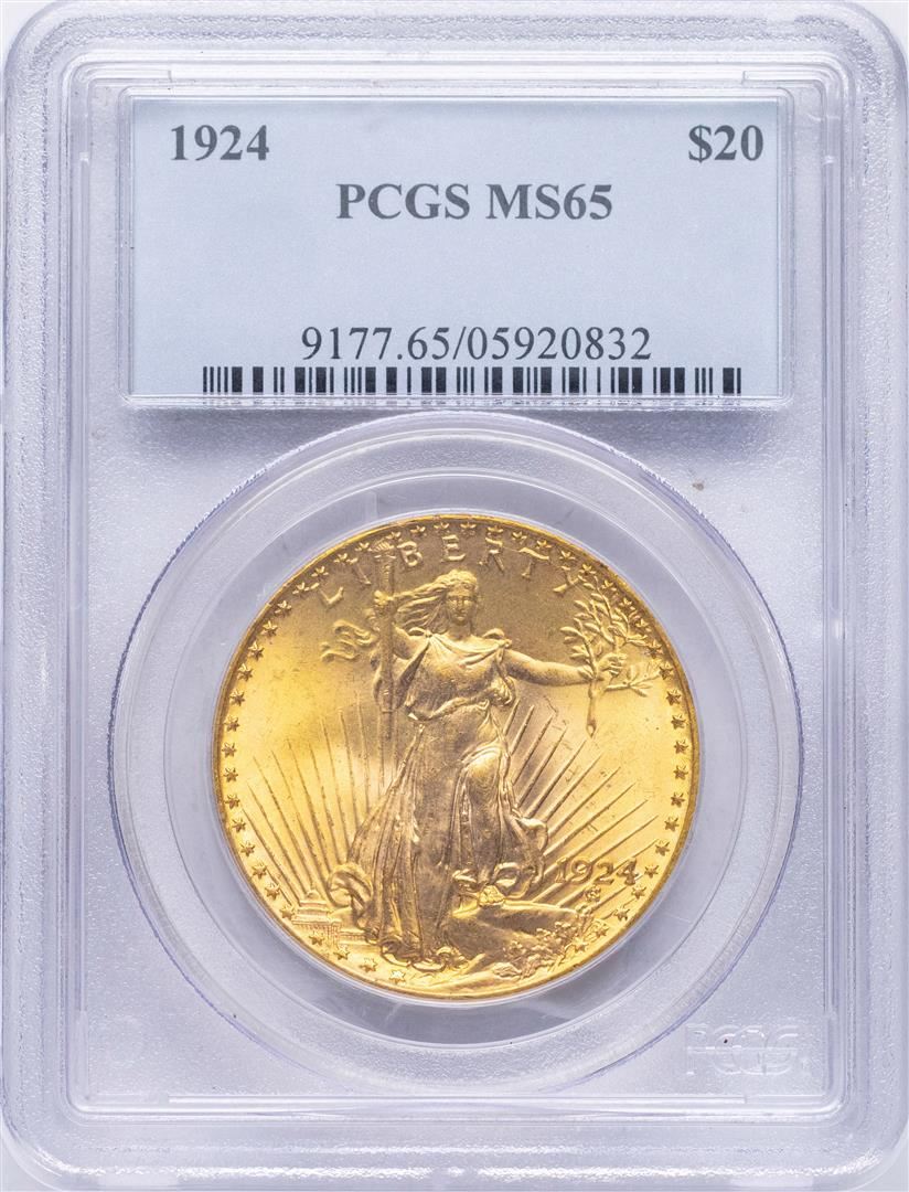 One 1924 $20 St. Gaudens Double Eagle Gold Coin PCGS MS65. PCGS Graded.