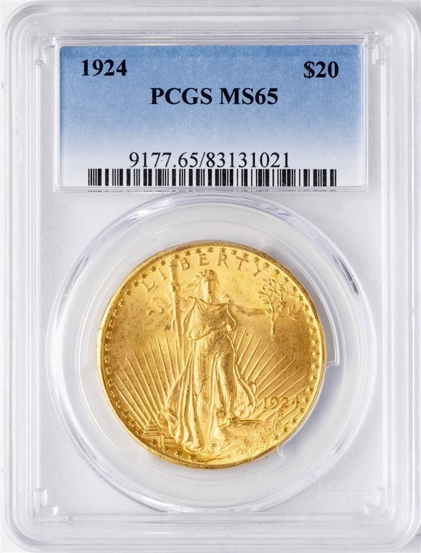 One 1924 $20 St. Gaudens Double Eagle Gold Coin PCGS MS65. PCGS Graded.