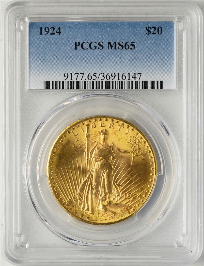 One 1924 $20 St. Gaudens Double Eagle Gold Coin PCGS MS65. PCGS Graded.