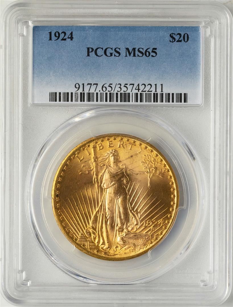 One 1924 $20 St. Gaudens Double Eagle Gold Coin PCGS MS65. PCGS Graded.