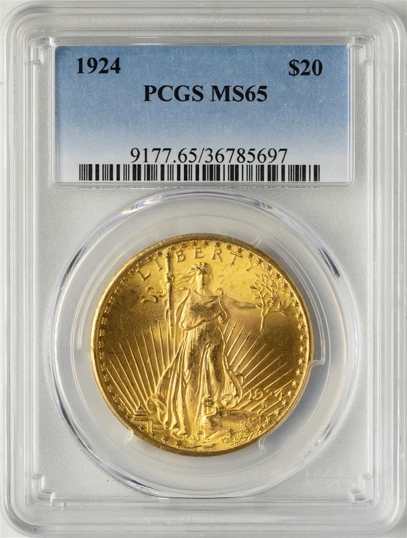 One 1924 $20 St. Gaudens Double Eagle Gold Coin PCGS MS65. PCGS Graded.