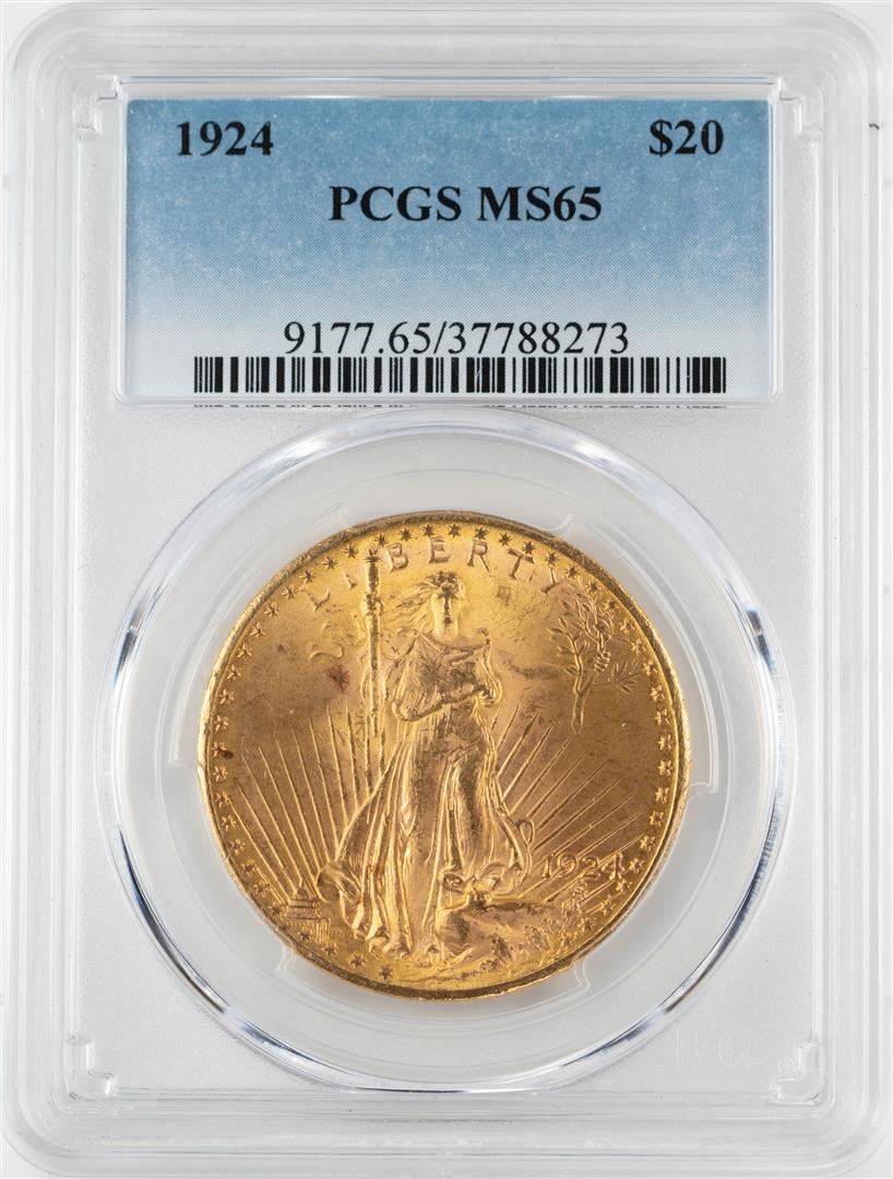 One 1924 $20 St. Gaudens Double Eagle Gold Coin PCGS MS65. PCGS Graded.