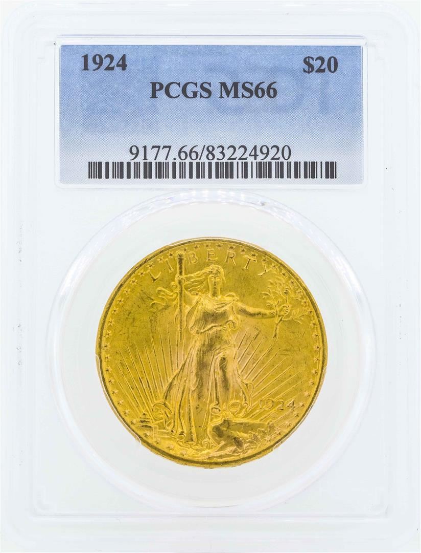 One 1924 $20 St. Gaudens Double Eagle Gold Coin PCGS MS66. PCGS Graded.