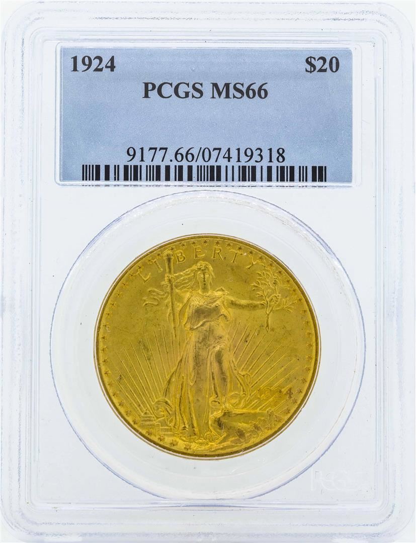 One 1924 $20 St. Gaudens Double Eagle Gold Coin PCGS MS66. PCGS Graded.