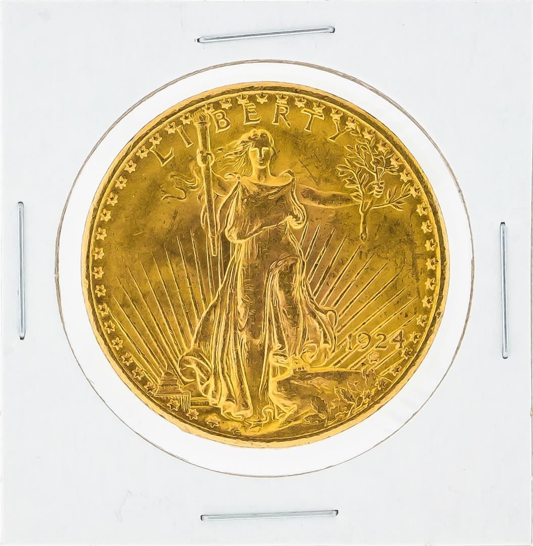 One 1924 $20 St Gaudens Double Eagle Gold Coin.
