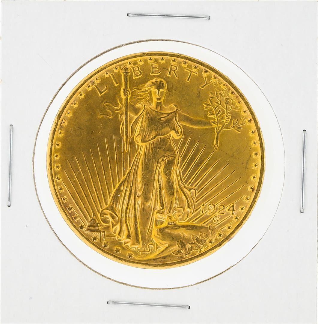 One 1924 $20 St. Gaudens Double Eagle Gold Coin.