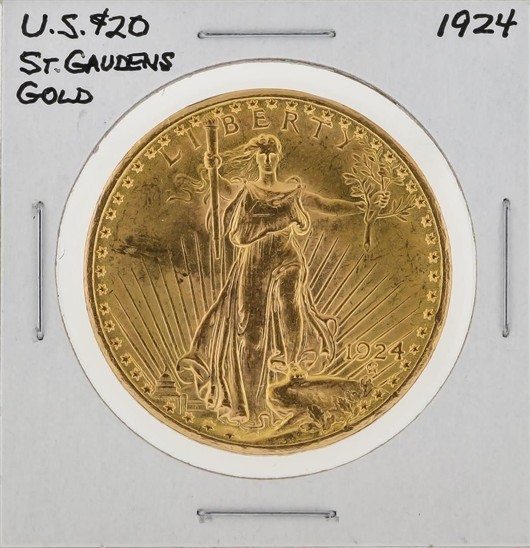 One 1924 $20 St. Gaudens Double Eagle Gold Coin.