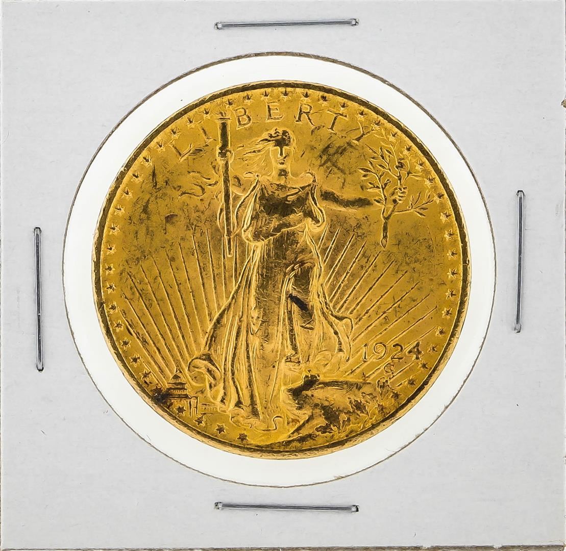One 1924 $20 St. Gaudens Double Eagle Gold Coin.