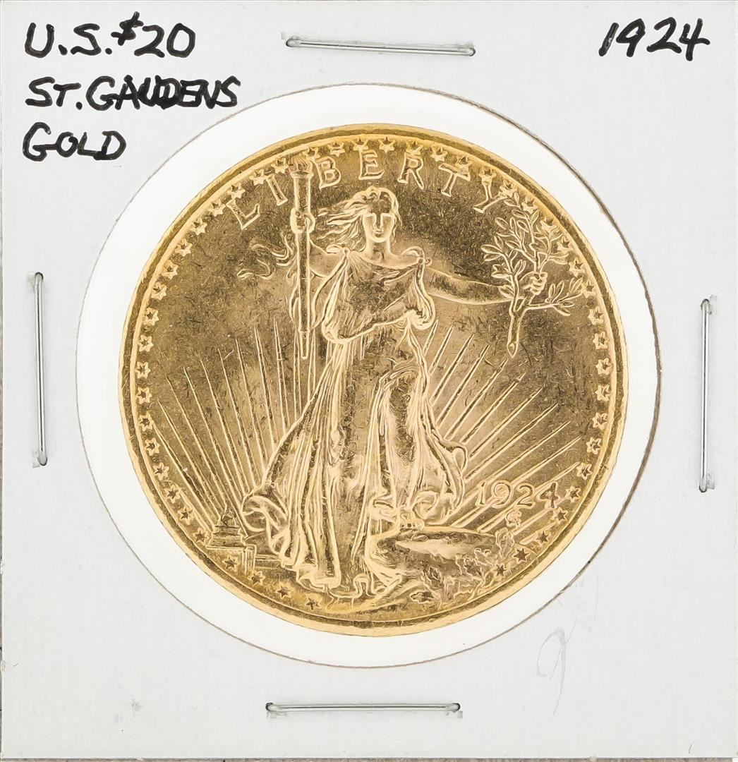 One 1924 $20 St. Gaudens Double Eagle Gold Coin.