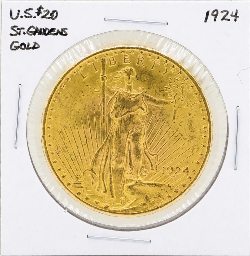 One 1924 $20 St. Gaudens Double Eagle Gold Coin.