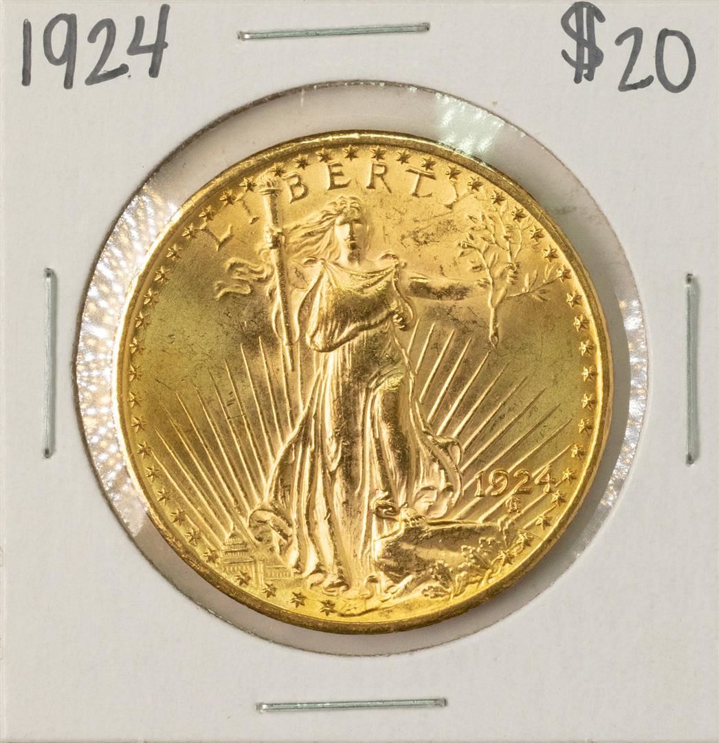 One 1924 $20 St. Gaudens Double Eagle Gold Coin.