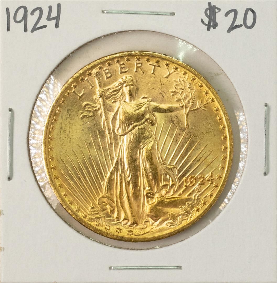 One 1924 $20 St. Gaudens Double Eagle Gold Coin.
