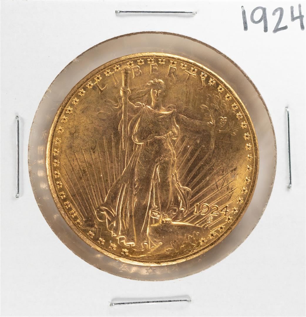 One 1924 $20 St. Gaudens Double Eagle Gold Coin.