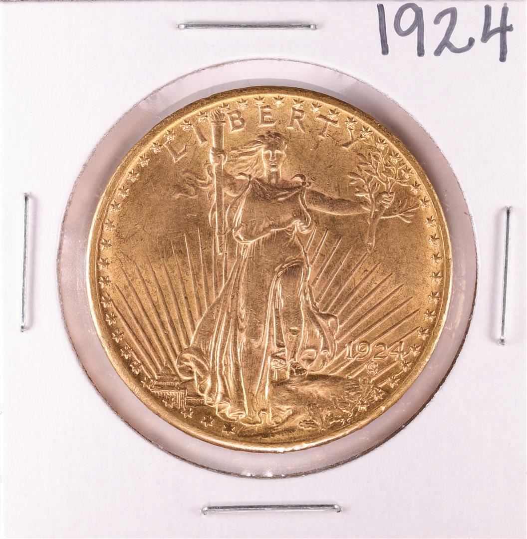One 1924 $20 St. Gaudens Double Eagle Gold Coin.
