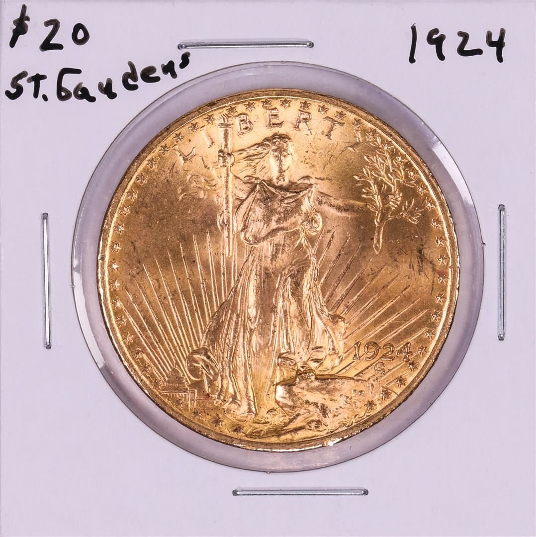 One 1924 $20 St. Gaudens Double Eagle Gold Coin.