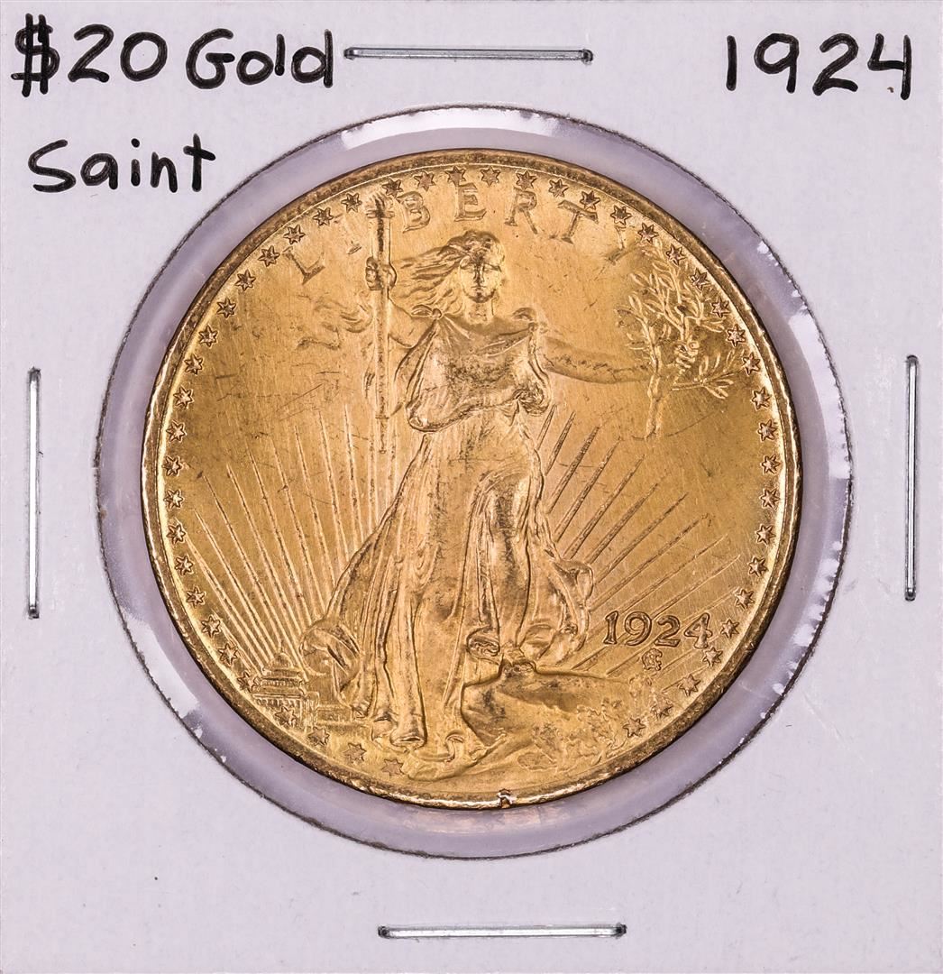 One 1924 $20 St Gaudens Double Eagle Gold Coin.