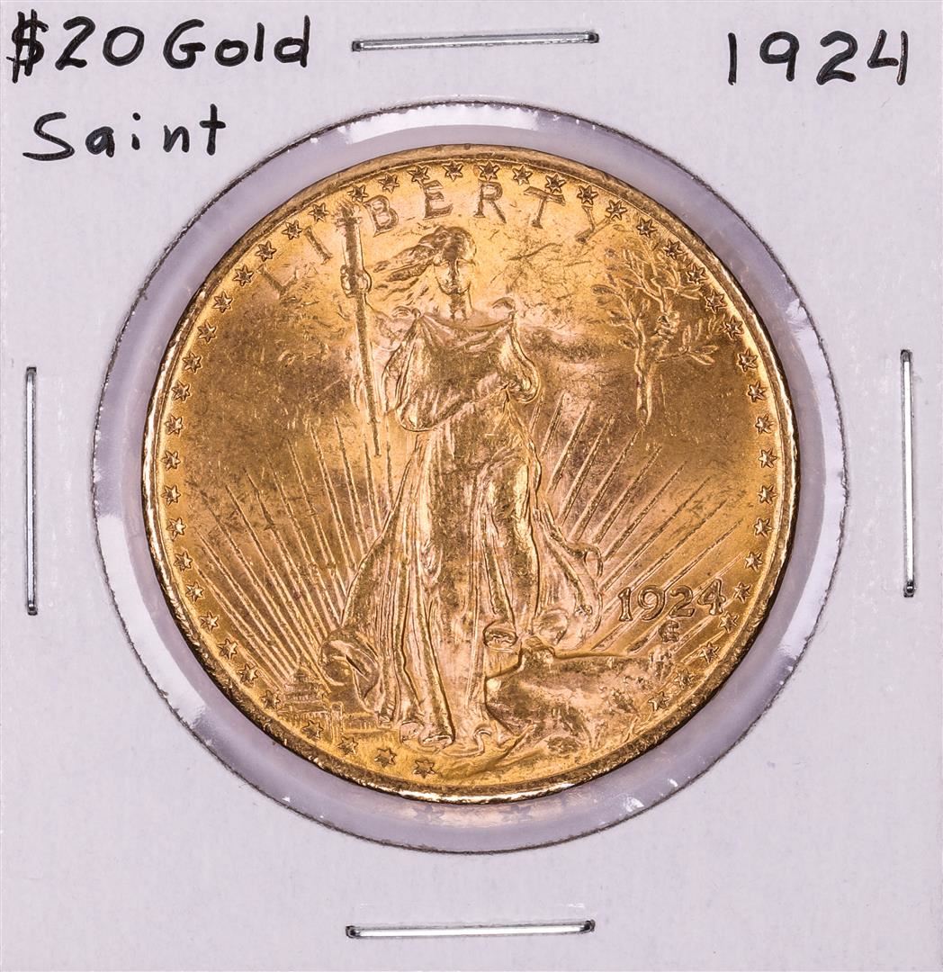 One 1924 $20 St Gaudens Double Eagle Gold Coin.