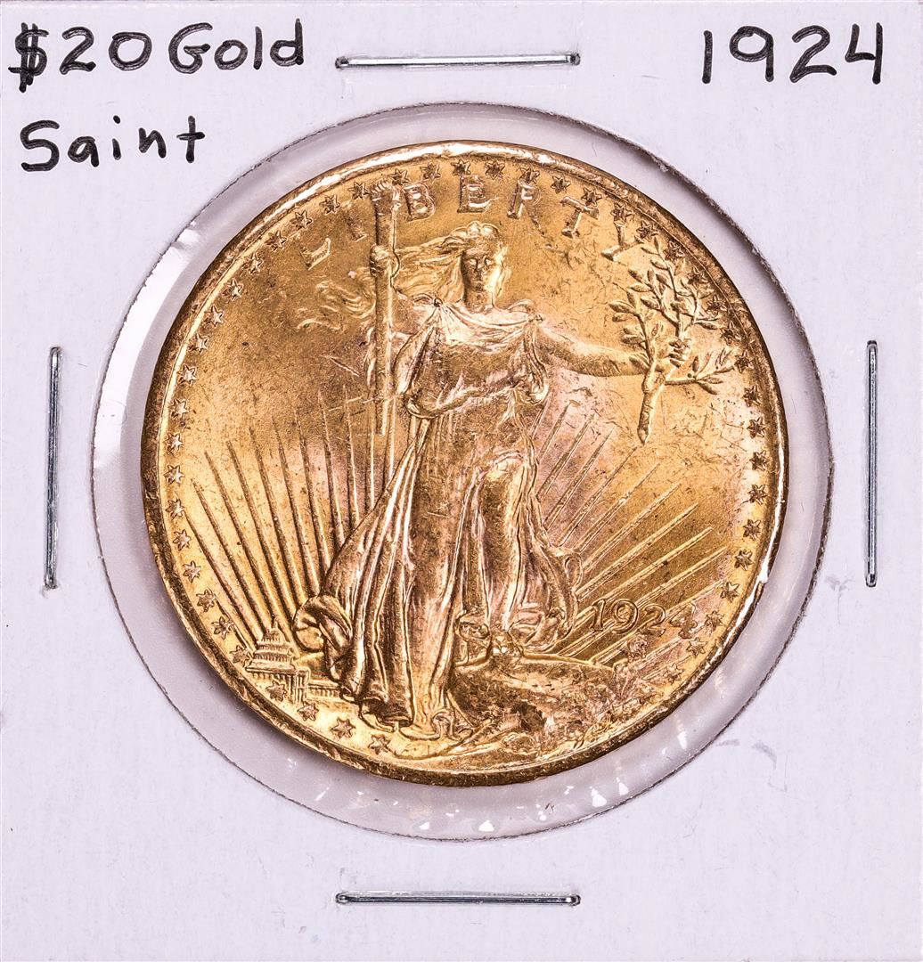 One 1924 $20 St. Gaudens Double Eagle Gold Coin.