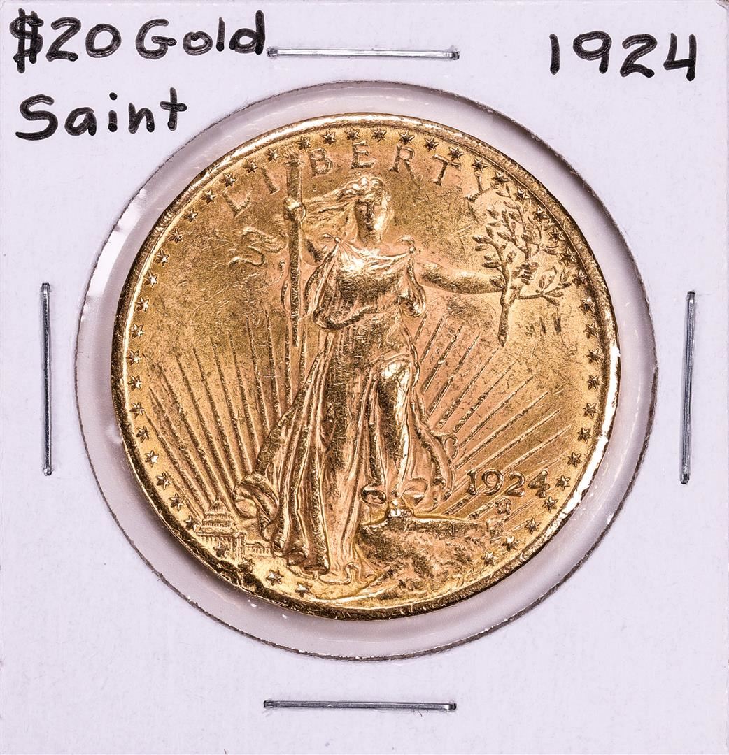 One 1924 $20 St. Gaudens Double Eagle Gold Coin.