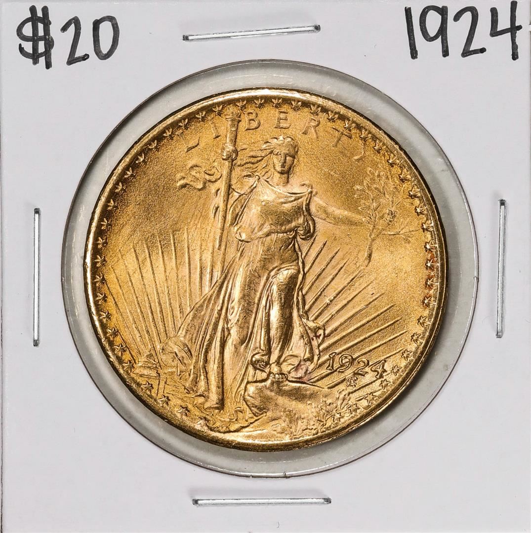 One 1924 $20 St. Gaudens Double Eagle Gold Coin.