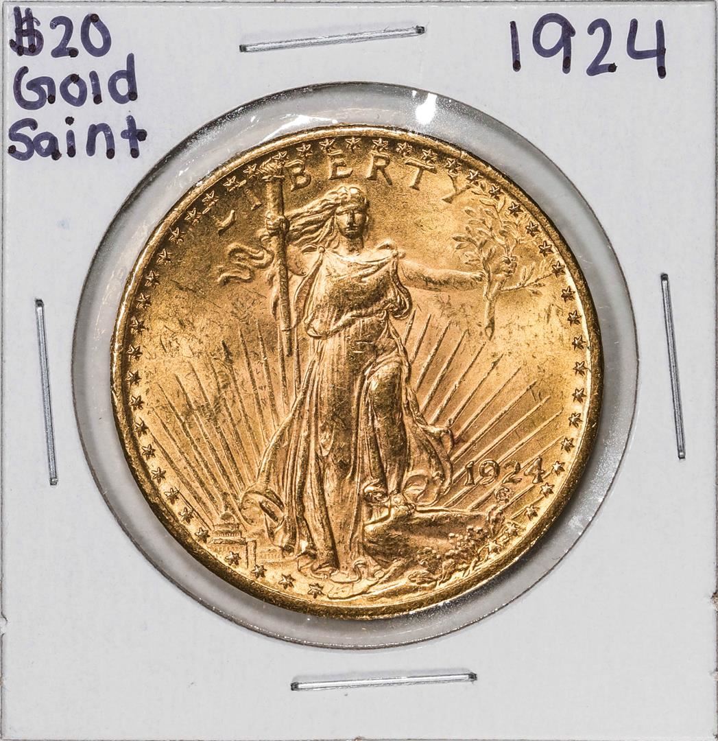 One 1924 $20 St. Gaudens Double Eagle Gold Coin.