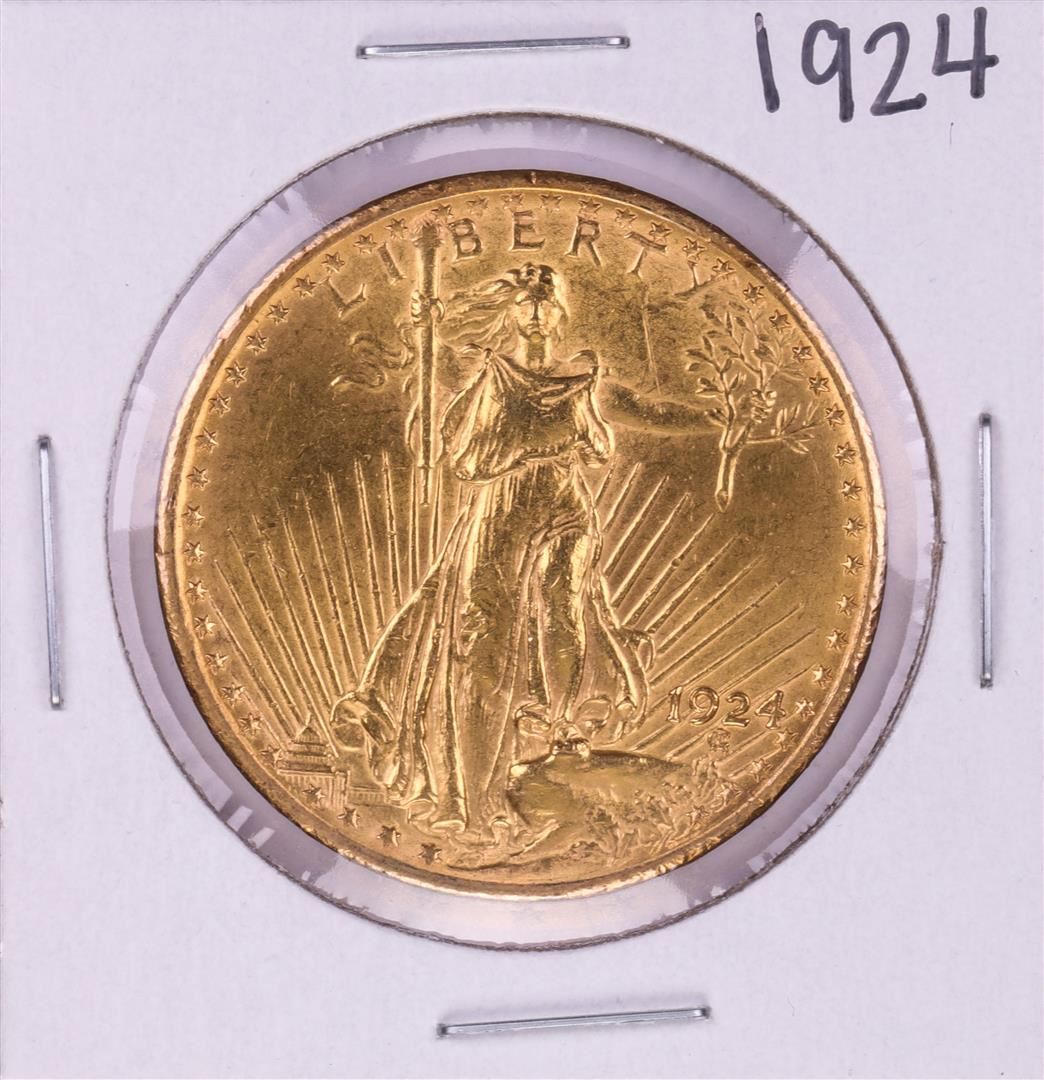 One 1924 $20 St. Gaudens Head Double Eagle Gold Coin.