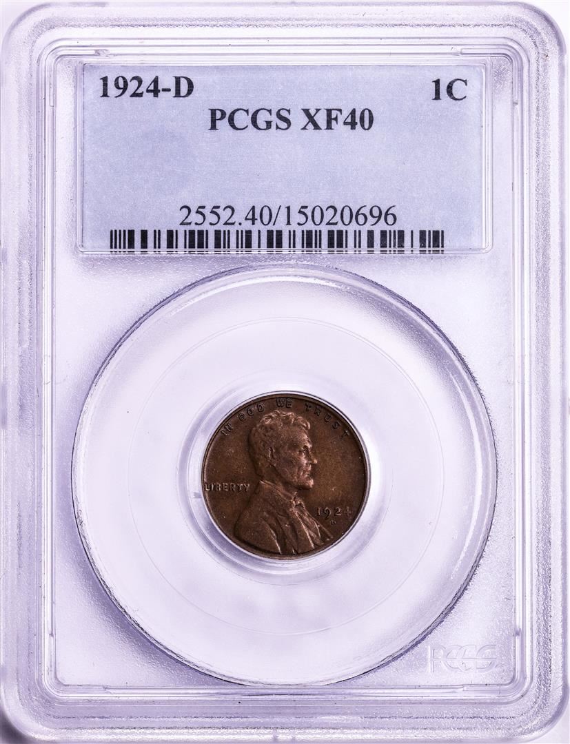 One 1924-D Lincoln Wheat Cent Coin PCGS XF40. PCGS Graded.