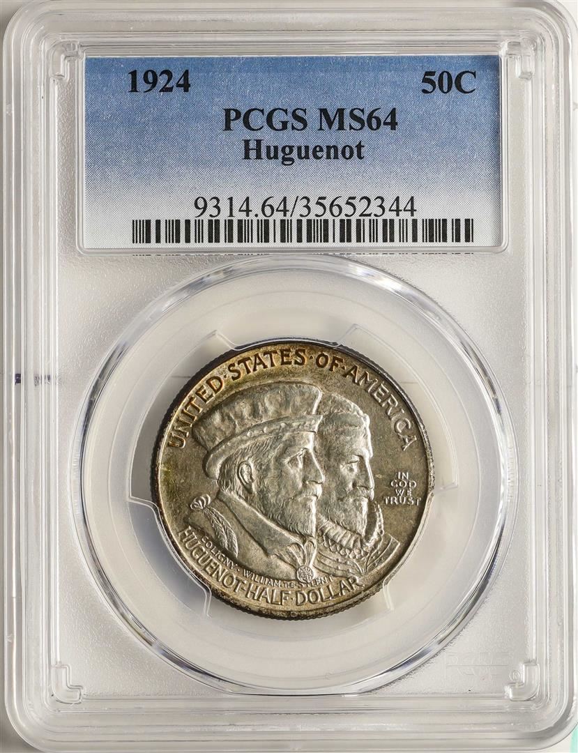 One 1924 Huguenot Tercentenary Commemorative Half Dollar Coin PCGS MS64. PCGS Graded.