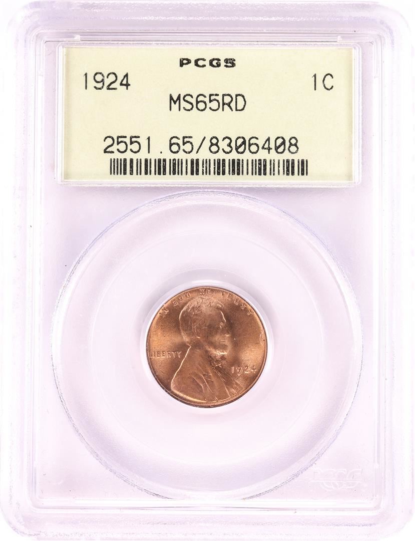 One 1924 Lincoln Wheat Cent Coin PCGS MS65RD Old Green Holder. PCGS Graded.