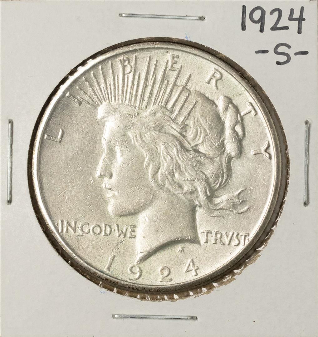 One 1924-S $1 Peace Silver Dollar Coin.