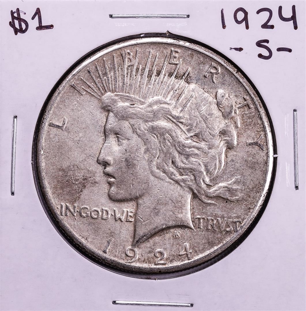 One 1924-S $1 Peace Silver Dollar Coin.