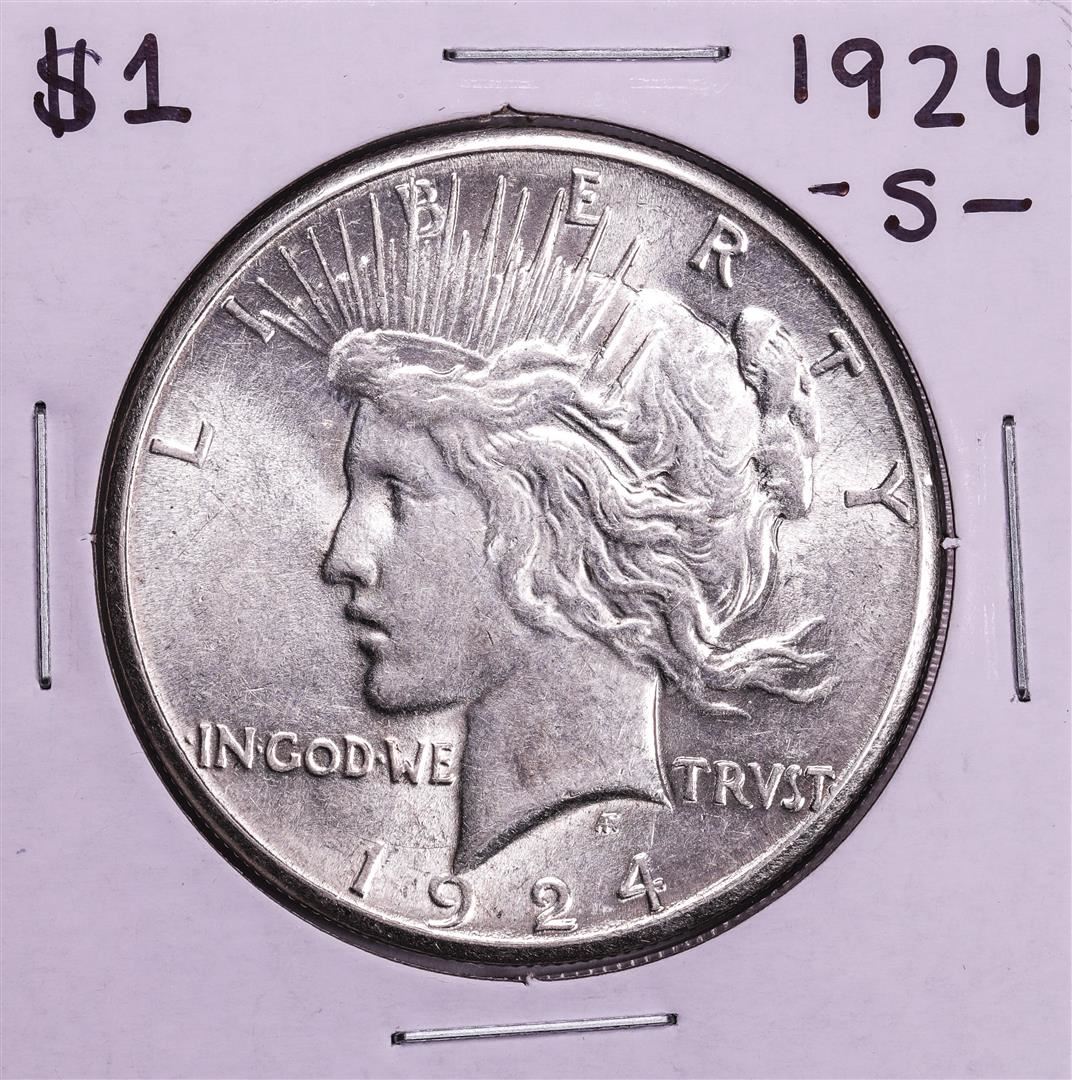 One 1924-S $1 Peace Silver Dollar Coin.